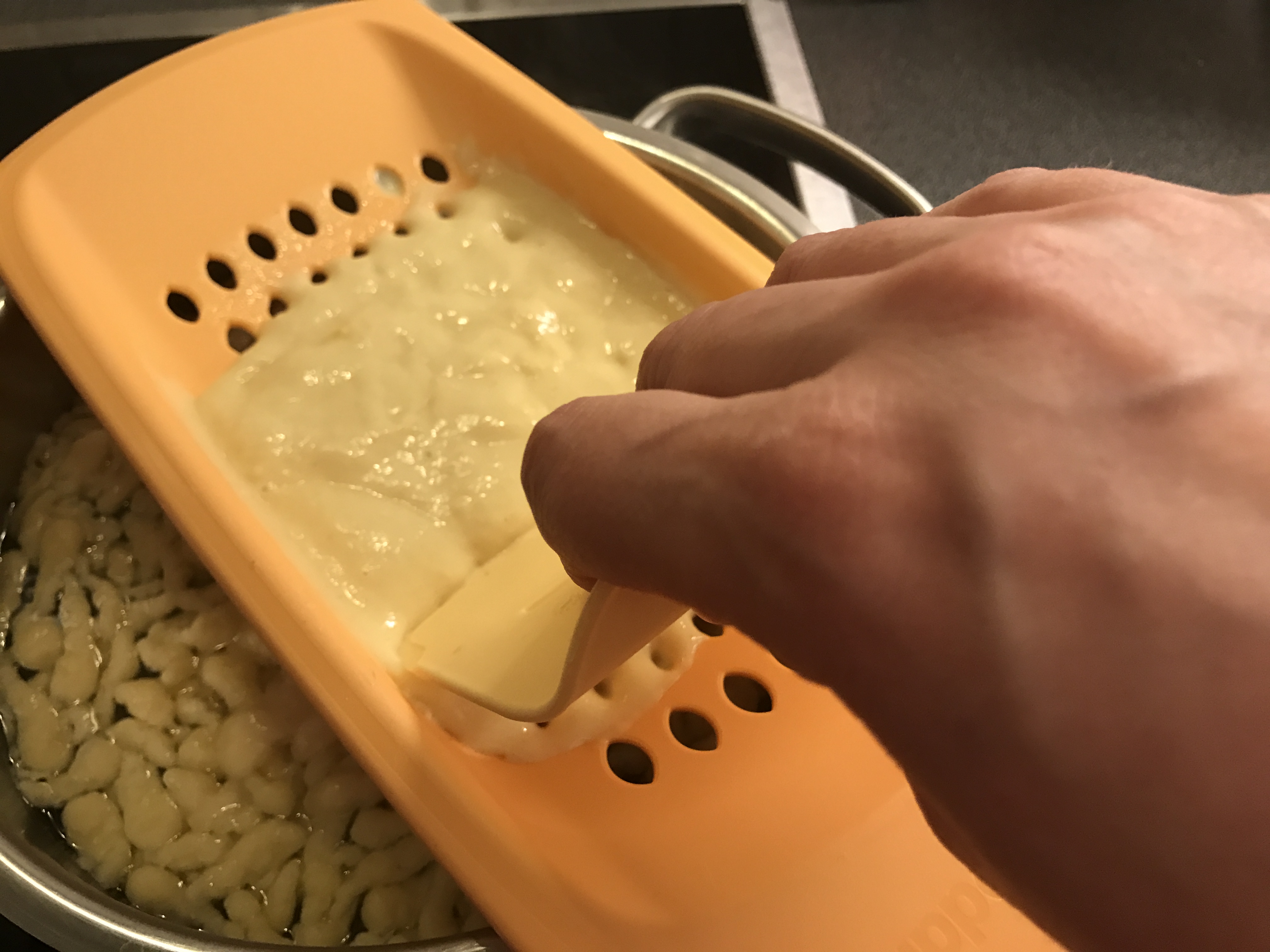 Spätzleteig durch den Spätzlehobel streichen 18. Februar 201718. Februar 2017 / Claudia's Genusswerkstatt Spätzleteig durch den Spätzlehobel streichen