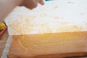Biskuitroulade 25. Juni 201825. Juni 2018 / Claudia's Genusswerkstatt Biskuitroulade – Backpapier abziehen