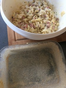 Überbackene Schinkenfleckerl 19. Juli 201819. Juli 2018 / Claudia's Genusswerkstatt Überbackene Schinkenfleckerl Masse in die vorbereitete Form füllen